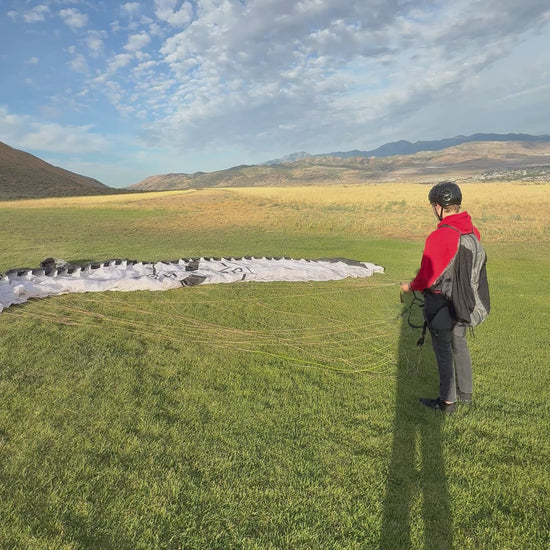 Jordan Schanze's prefered and recommended super lightweight and portable skylight harnesses! This harness is reversible so when you flip it inside out its a backpack that can fit pretty much any glider in it! When folded we've fit gliders sized 30m and bigger inside it before!