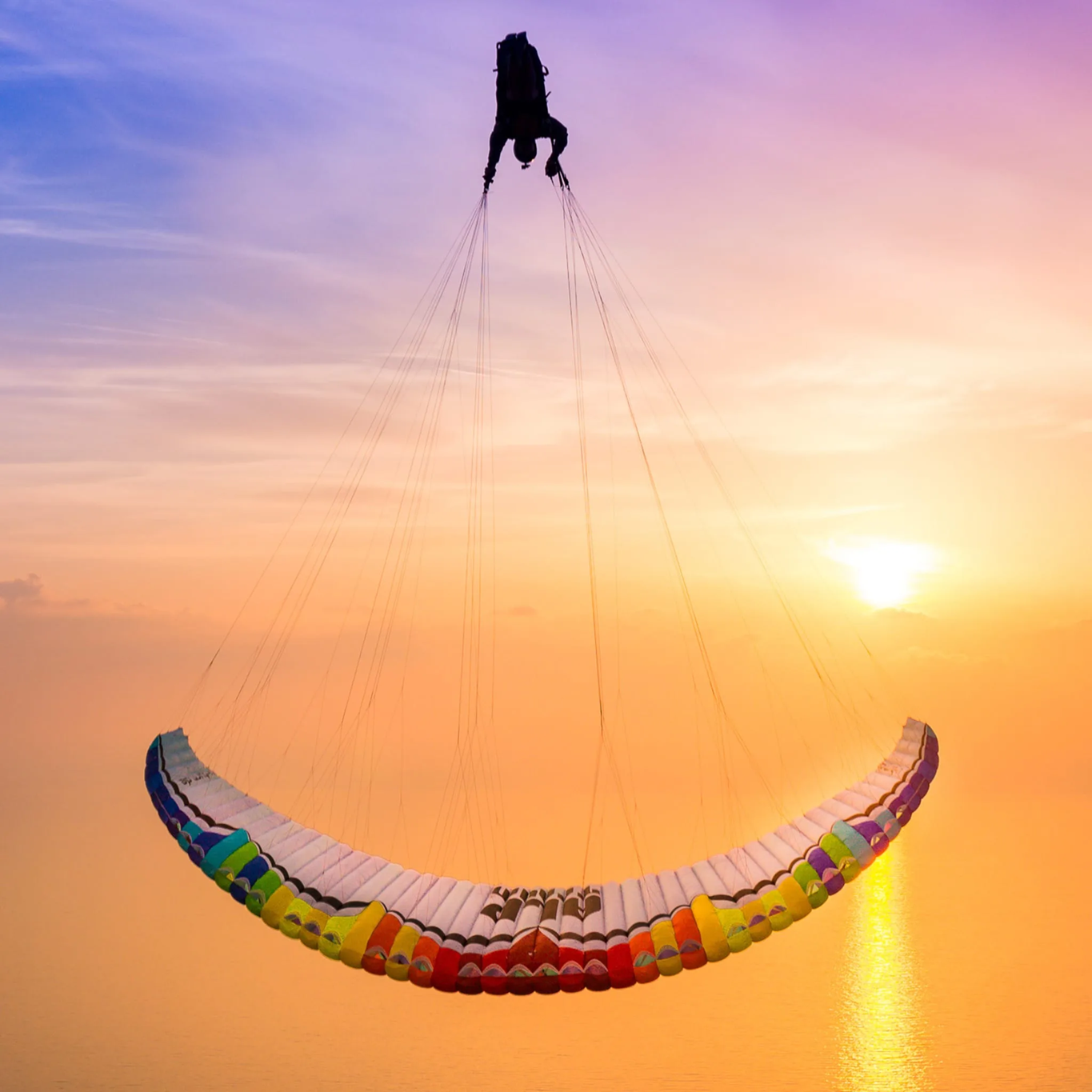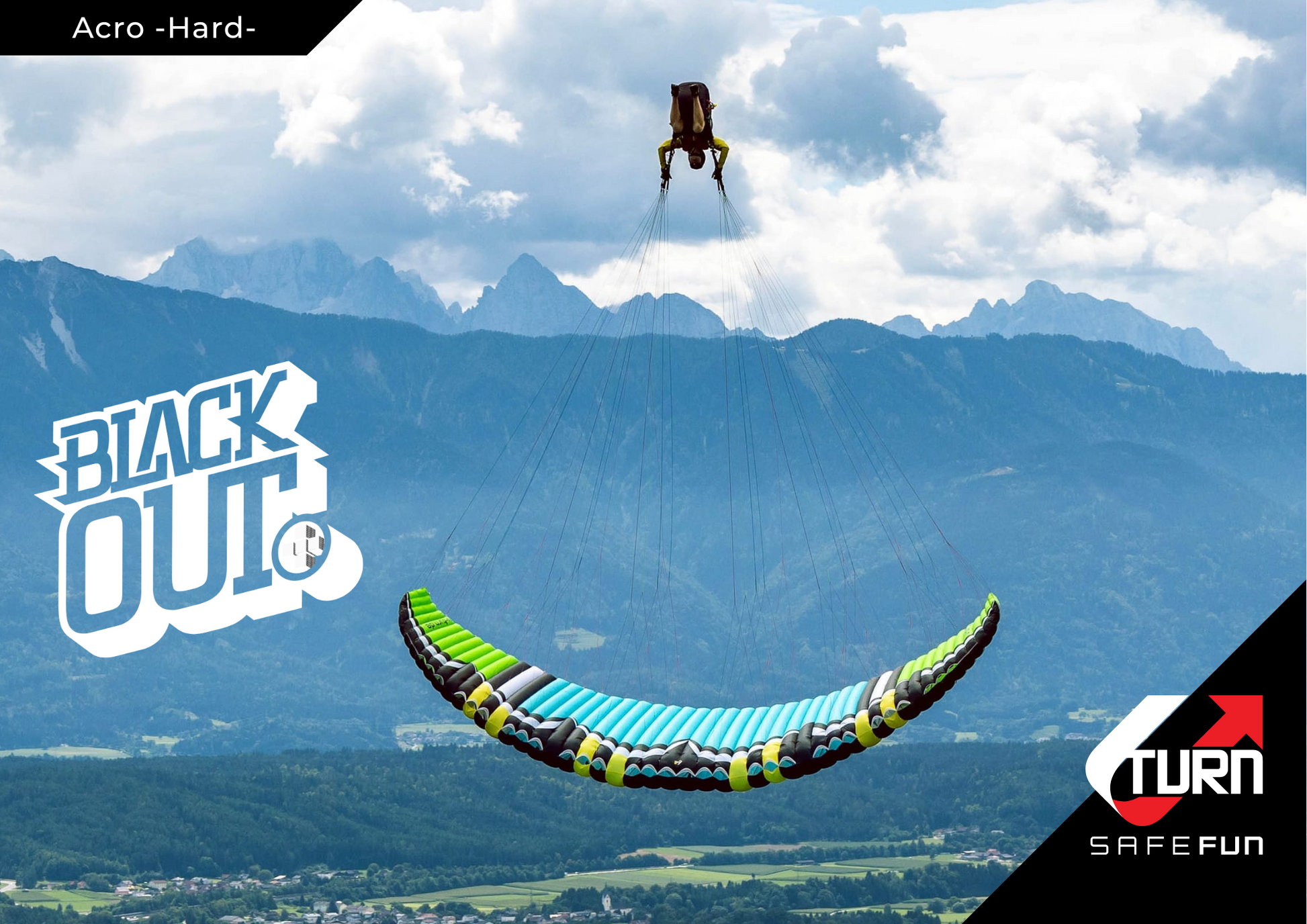 "The acro wing with unbeatable handling! The BLACKOUT success story is based on a well-balanced canopy harmony that provides a perfect blend of forgiving dynamics and precise handling. With the BLACKOUT PLUS, a significant increase in both dynamics and handling has been achieved without making the wing more aggressive. The BLACKOUT PLUS is aimed equally at hobby acro pilots and acro beginners as well as professionals, and the BLACKOUT PLUS places particular emphasis on longevity and maintaining excellent flying characteristics under extreme loads. The wing is therefore supplied with a pre-trim and the BLACKOUT PLUS also uses the specially developed PX40. This proven material was used for the first time for the THRILLER and has been continuously developed further. A new type of coating ensures better long-term values and optimized tear resistance. PX40 is currently the strongest material from which a wing can be made. Everything is done to ensure durability and dimensional stability, including multiple reinforced seams and reinforcements on all line attachments and V-tapes. Chief designer Ernst Strobl builds the dynamic acro wing on 50 cells and relies on a modified line geometry. Like all acro wings, the BLACKOUT PLUS is also equipped with the Stabilo Security Function (SSF) to quickly release any tangles."