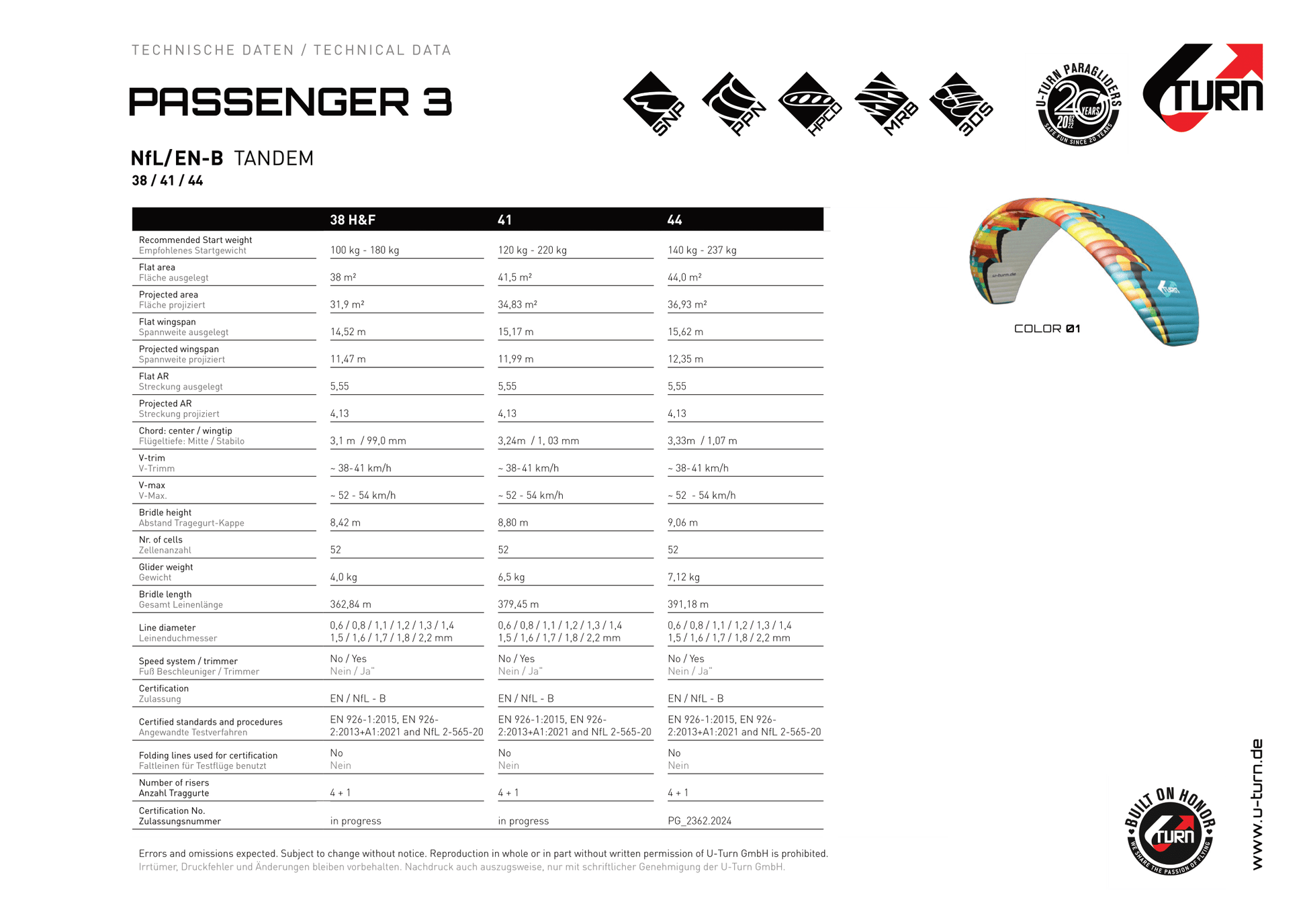 The PASSENGER 3 is aimed at all tandem pilots who are looking for a highly developed two-seater wing of the latest generation. Agile handling in combination with high performance resources for two-seater excursions.
